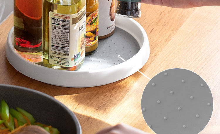 بفضل الدوران السلس والسهل، يمكنك الوصول بسهولة إلى كافة العناصر المخزنة في الصينية، دون الحاجة إلى التفاف وتحريك العناصر بشكل منفصل. كما أن التصميم المدمج والمحكم يوفر مساحة قيمة على الرفوف والمسطحات العاملة.