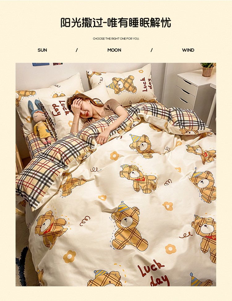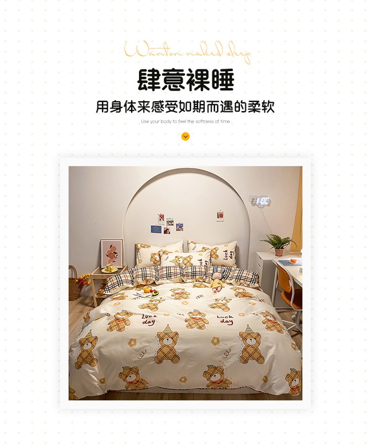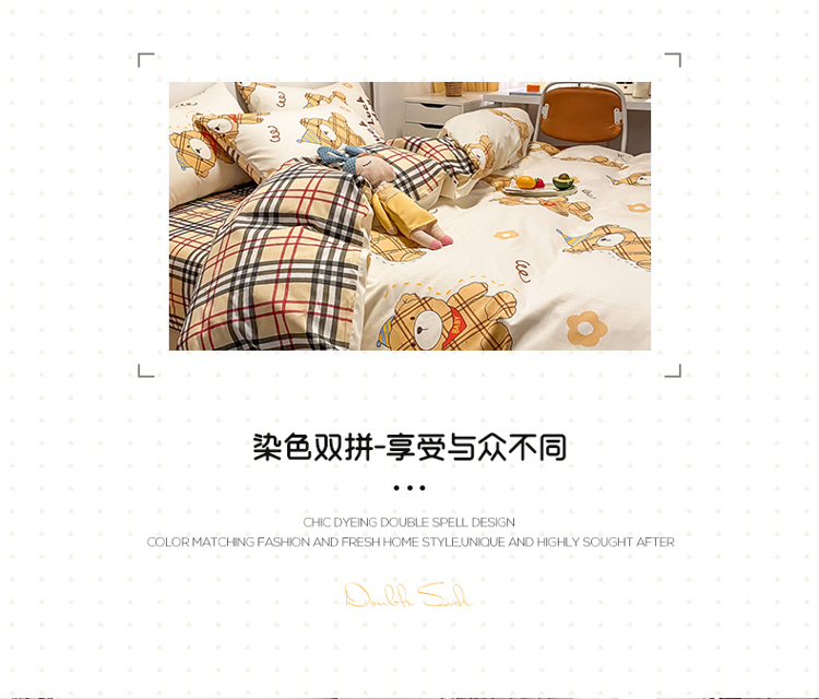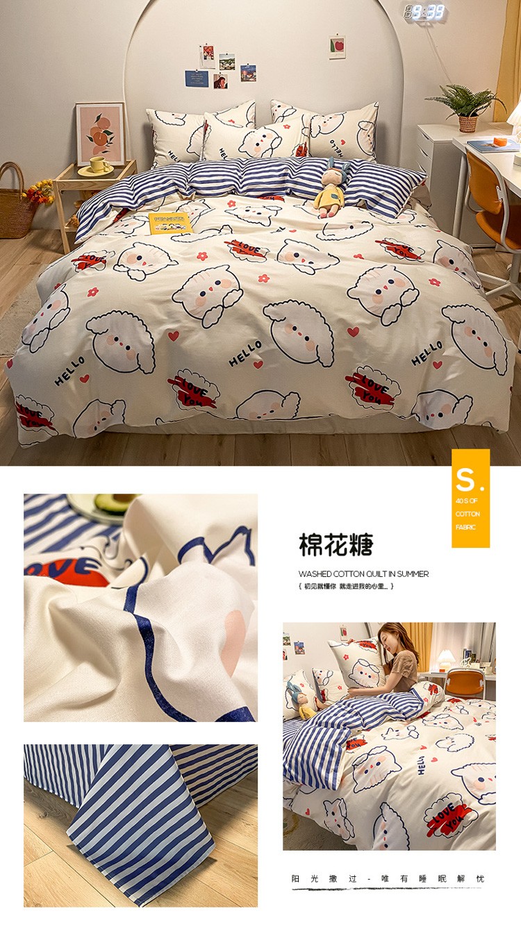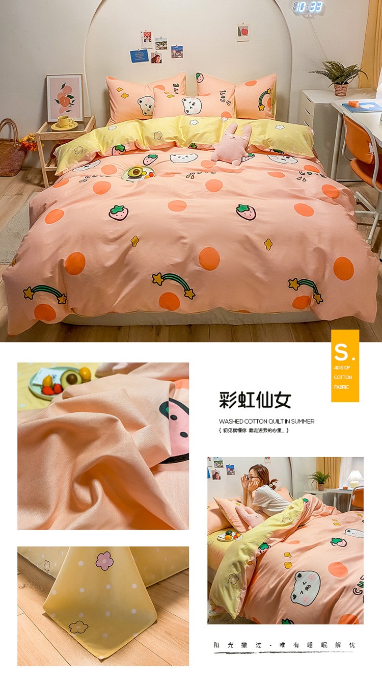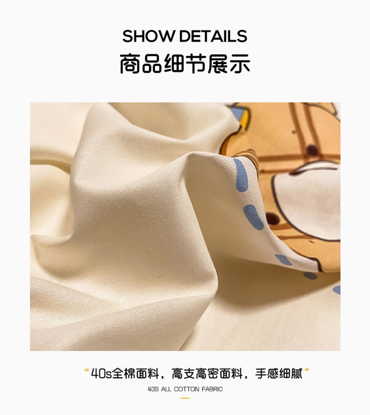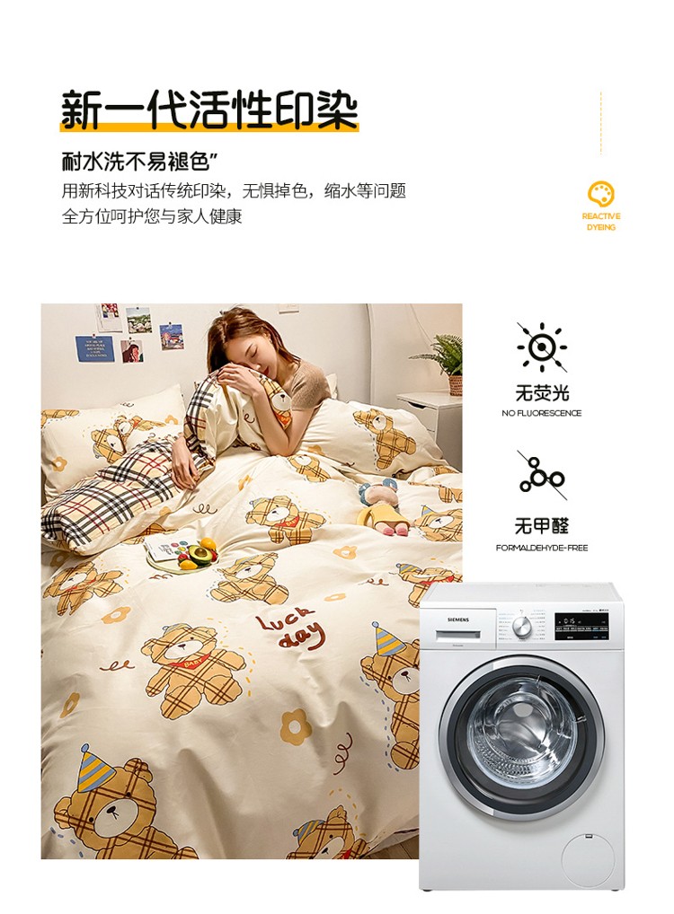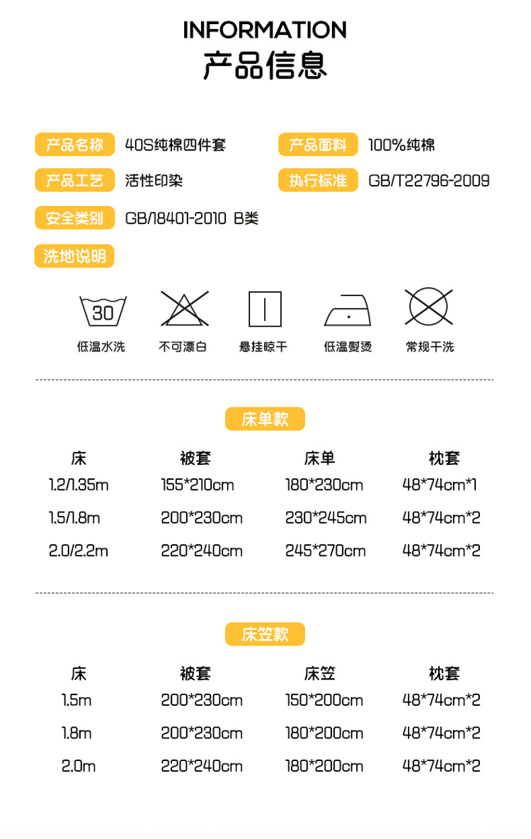 - 适用床尺寸: 1.2m(4英尺)床单款【被套150*200cm床单180*230cm枕套48*74cm*1】 1.5m(5英尺)床单款【被套200*230cm床单230*245cm枕套48*74cm*2】 1.8m(6英尺)床单款【被套200*230cm床单230*245cm枕套48*74cm*2】 2.0m(6.6英尺)床单款【被套220*240cm床单245*270cm枕套48*74cm*2】 1.5m(5英尺)床笠款【被套200*230cm床笠150*200cm枕套48*74cm*2】 1.8m(6英尺)床笠款【被套200*230cm床笠180*200cm枕套48*74cm*2】 2.0m(6.6英尺)床笠款【被套220*240cm床笠180*200cm枕套48*74cm*2】
