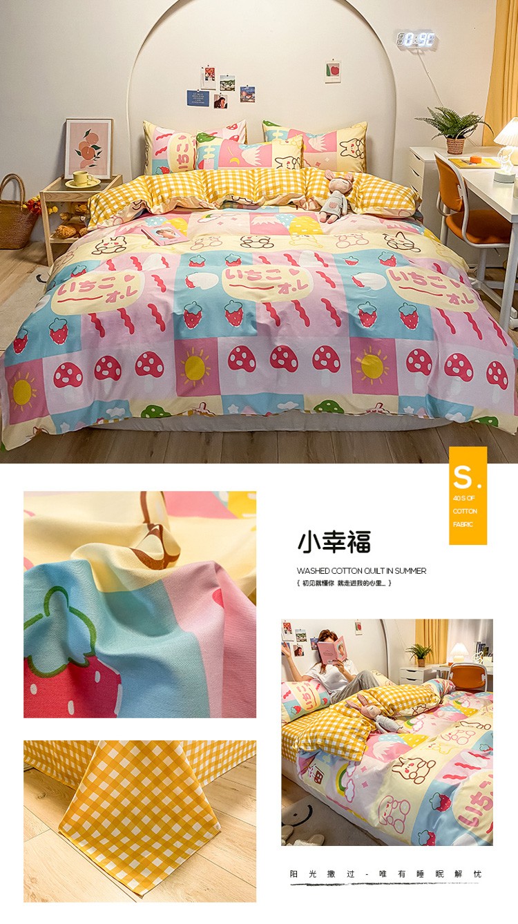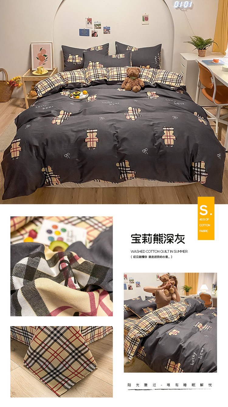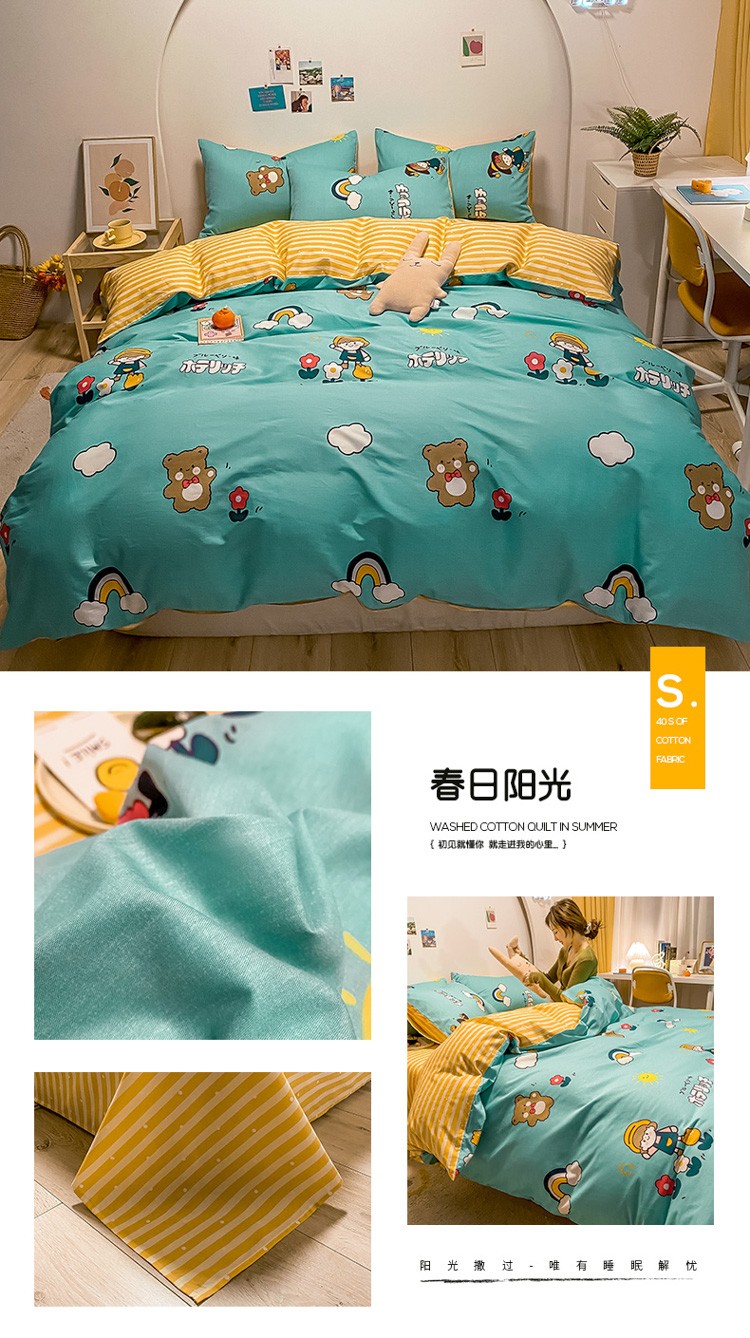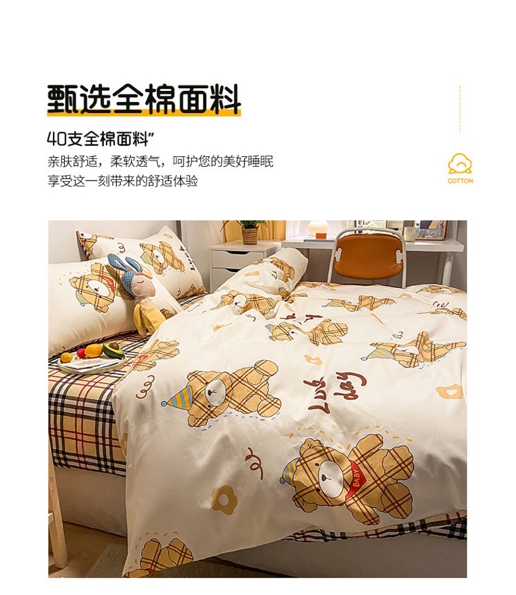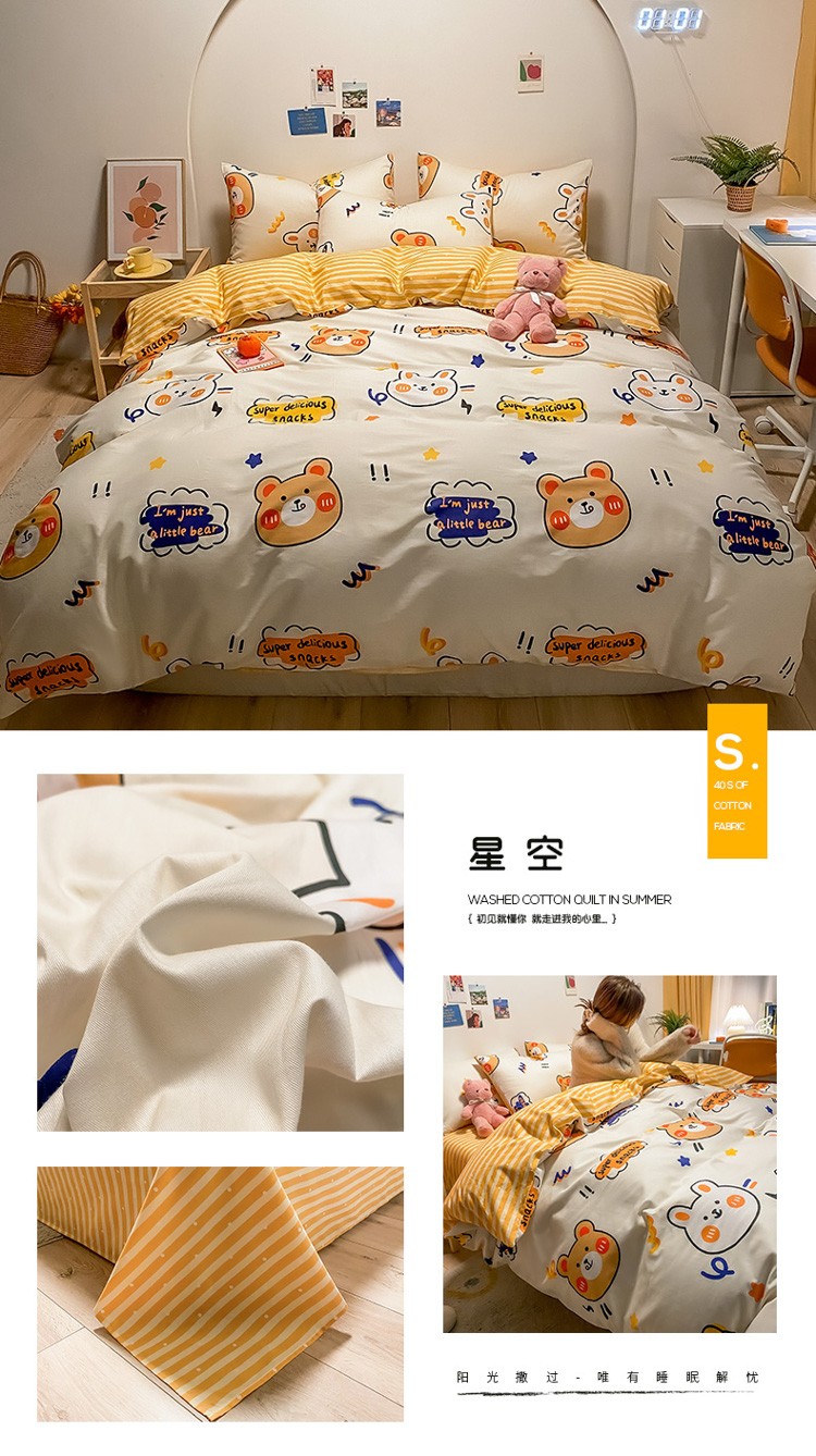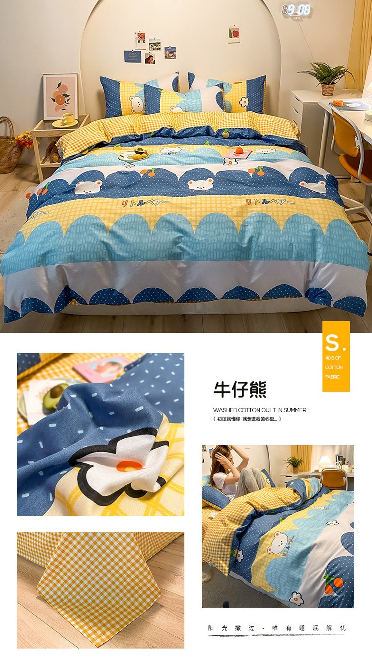 - 适用床尺寸: 1.2m(4英尺)床单款【被套150*200cm床单180*230cm枕套48*74cm*1】 1.5m(5英尺)床单款【被套200*230cm床单230*245cm枕套48*74cm*2】 1.8m(6英尺)床单款【被套200*230cm床单230*245cm枕套48*74cm*2】 2.0m(6.6英尺)床单款【被套220*240cm床单245*270cm枕套48*74cm*2】 1.5m(5英尺)床笠款【被套200*230cm床笠150*200cm枕套48*74cm*2】 1.8m(6英尺)床笠款【被套200*230cm床笠180*200cm枕套48*74cm*2】 2.0m(6.6英尺)床笠款【被套220*240cm床笠180*200cm枕套48*74cm*2】