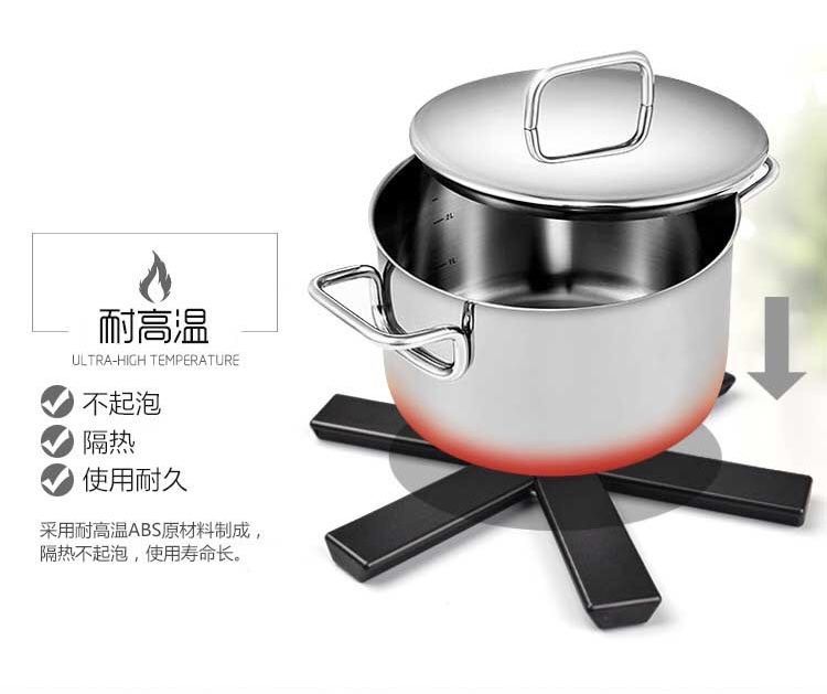 تم تصميم قاعدة الأواني العازلة بعناية فائقة باستخدام مواد عالية الجودة وتكنولوجيا متقدمة. تحتوي على طبقة عازلة قوية تمنع انتقال الحرارة من الأواني الساخنة إلى السطح الموضوع عليها. بفضل ذلك، يمكنك وضع أواني ساخنة على القاعدة دون القلق من إتلاف الأسطح أو تحريكها.
