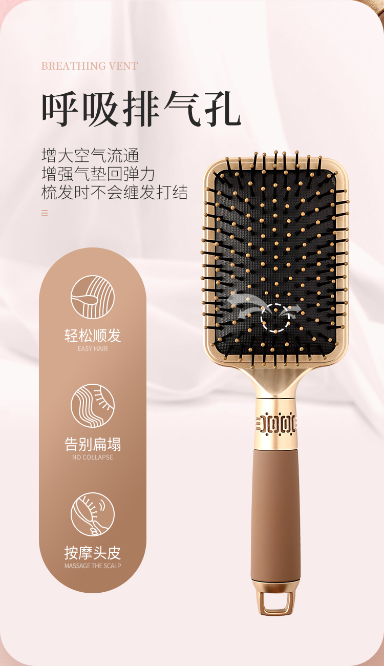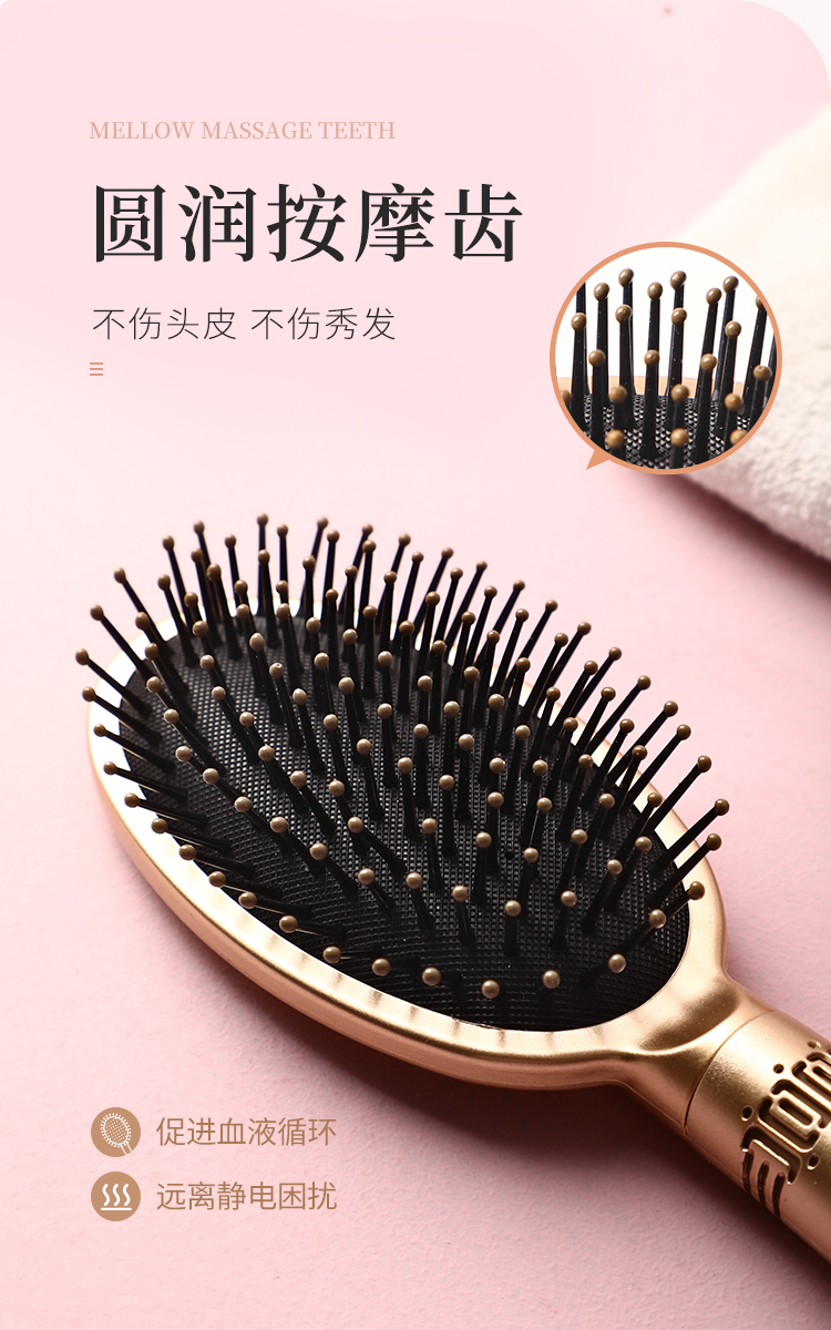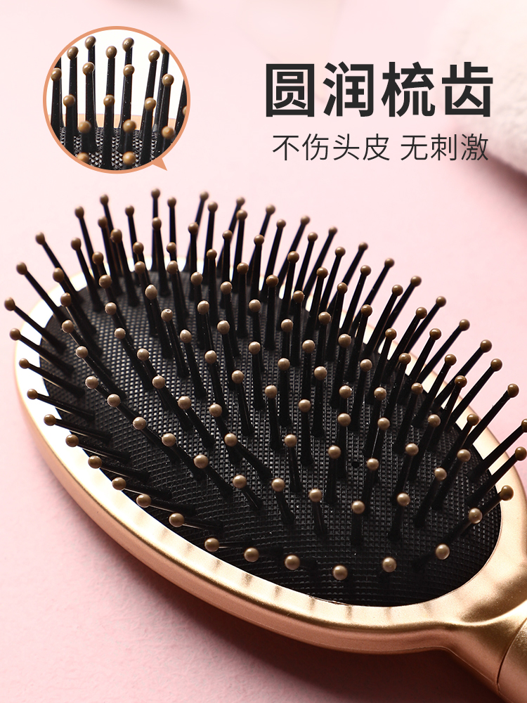 3. المشط البيضاوي: إن المشط البيضاوي هو أداة مثالية لفك التشابك وتصفيف الشعر الرقيق والهش. يتميز بأسنان مستدقة ومنحنية لتقليل التلف وتجنب التعرض للشعر. يمكن استخدام المشط البيضاوي لتصفيف الشعر الرطب أو الجاف ويوفر تجربة تصفيف مريحة وخالية من الشعور بالألم.