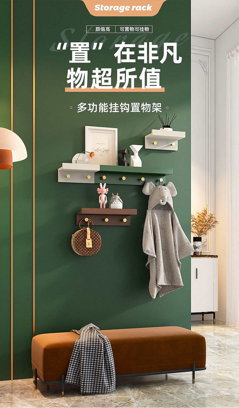 رف تخزين مع خطاف-علاق- بعدة احجام